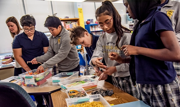 Our science curriculum, guided by the Nebraska State Standards and the Archdiocese of Omaha Science Standards, provides students with a rich and developmentally appropriate education that inspires curiosity and a love of learning. We use Bring Science Alive! by Teachers Curriculum Institute (TCI), a dynamic middle school curriculum fully aligned with the Next Generation Science Standards (NGSS).